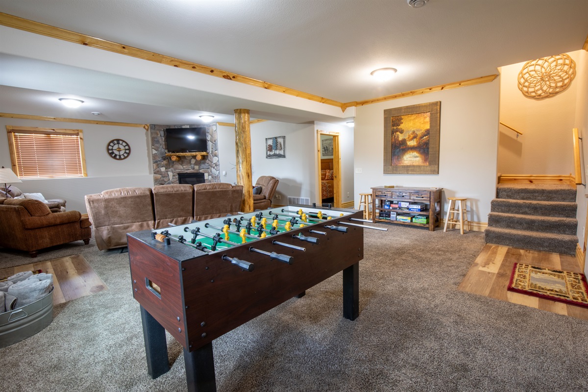 Aspen Ridge Lookout at Terry Peak is a stunning custom-built lodge offering 6 bedrooms, 3 full bathrooms, and space for up to 15 guests. Located just 600 yards from the Terry Peak Ski Lodge, this 3,300 sq ft retreat features breathtaking mountain views. With 5 king beds, 2 queen beds, and a twin, it’s perfect for large groups. The game room includes foosball, and air hockey is coming soon. After a day of adventure, unwind in the hot tub or cozy up by one of the two floor-to-ceiling gas fireplaces. The home also features wireless high-speed internet and big-screen TVs for ultimate comfort and convenience.