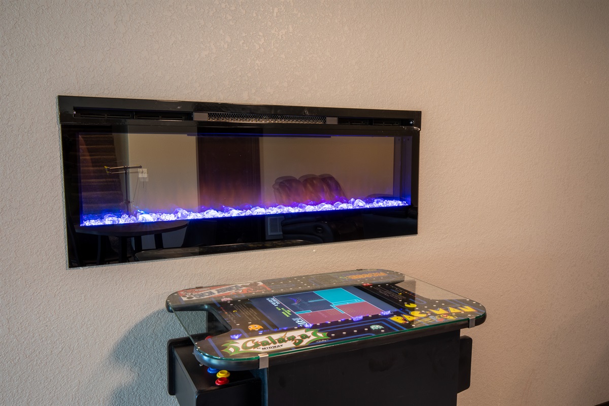 Back at the cabin, unwind with a thoughtfully designed open-concept layout across two spacious levels. The fully equipped kitchen features seating for 24 and upscale amenities like a Ninja blender, air fryer, waffle maker, multiple crockpots, and more. Relax in the main living area with a large TV and cozy gas fireplace, or head downstairs to the private home theater with reclining seats, a Blu-ray/DVD player, arcade table, and card games.