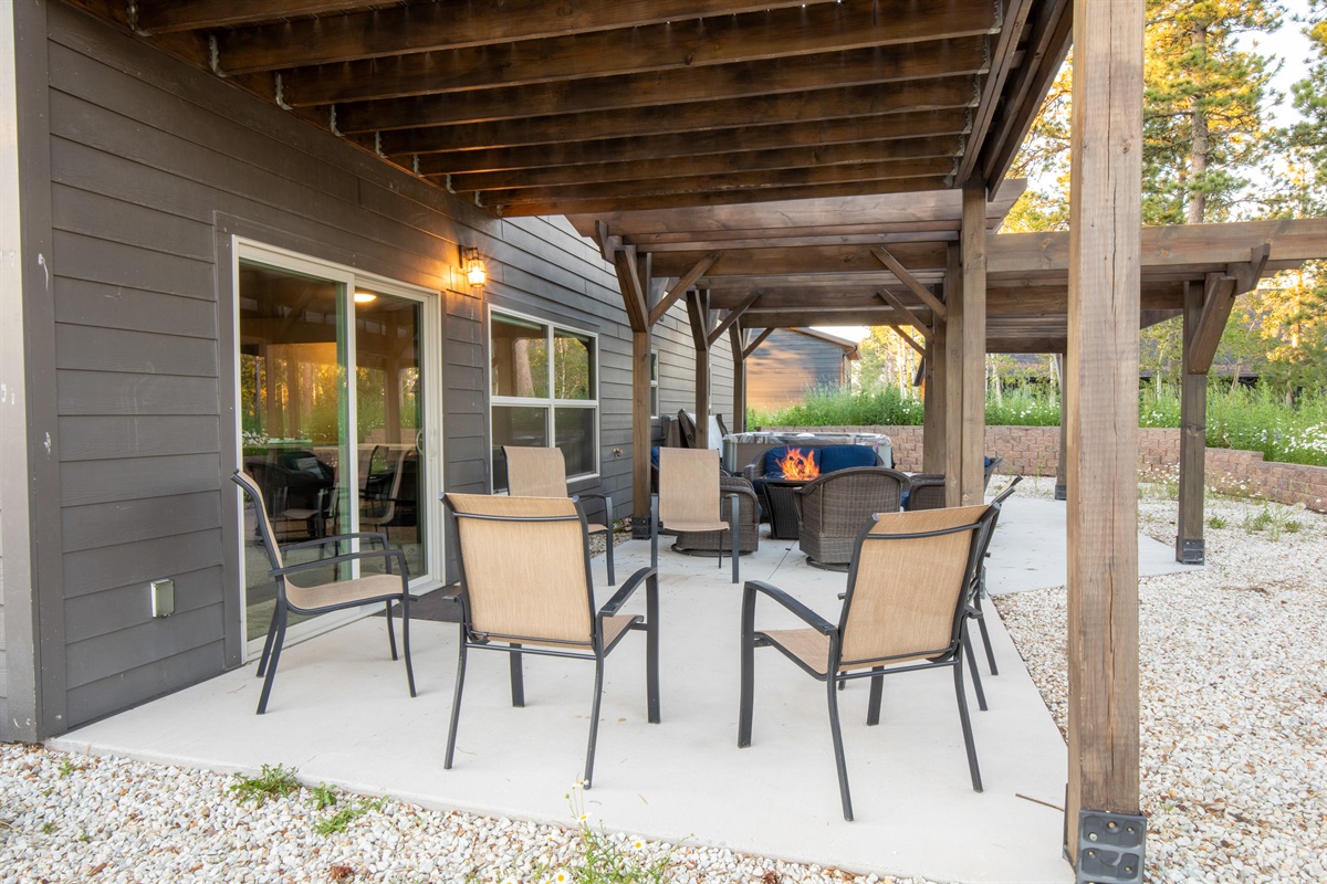 Step out to the lower patio to enjoy a gas firepit surrounded by comfortable seating. A private hot tub and access to the Powder House Pass clubhouse—with outdoor heated pool—round out the experience.